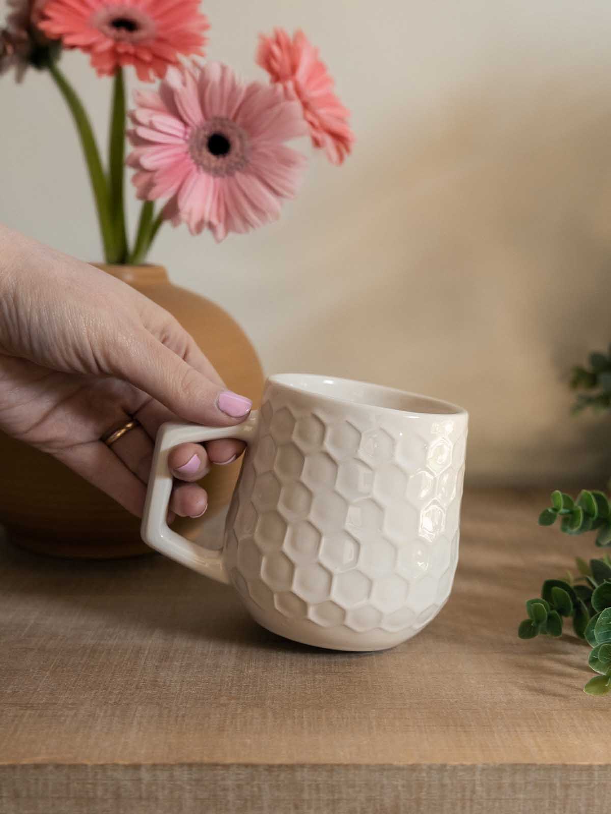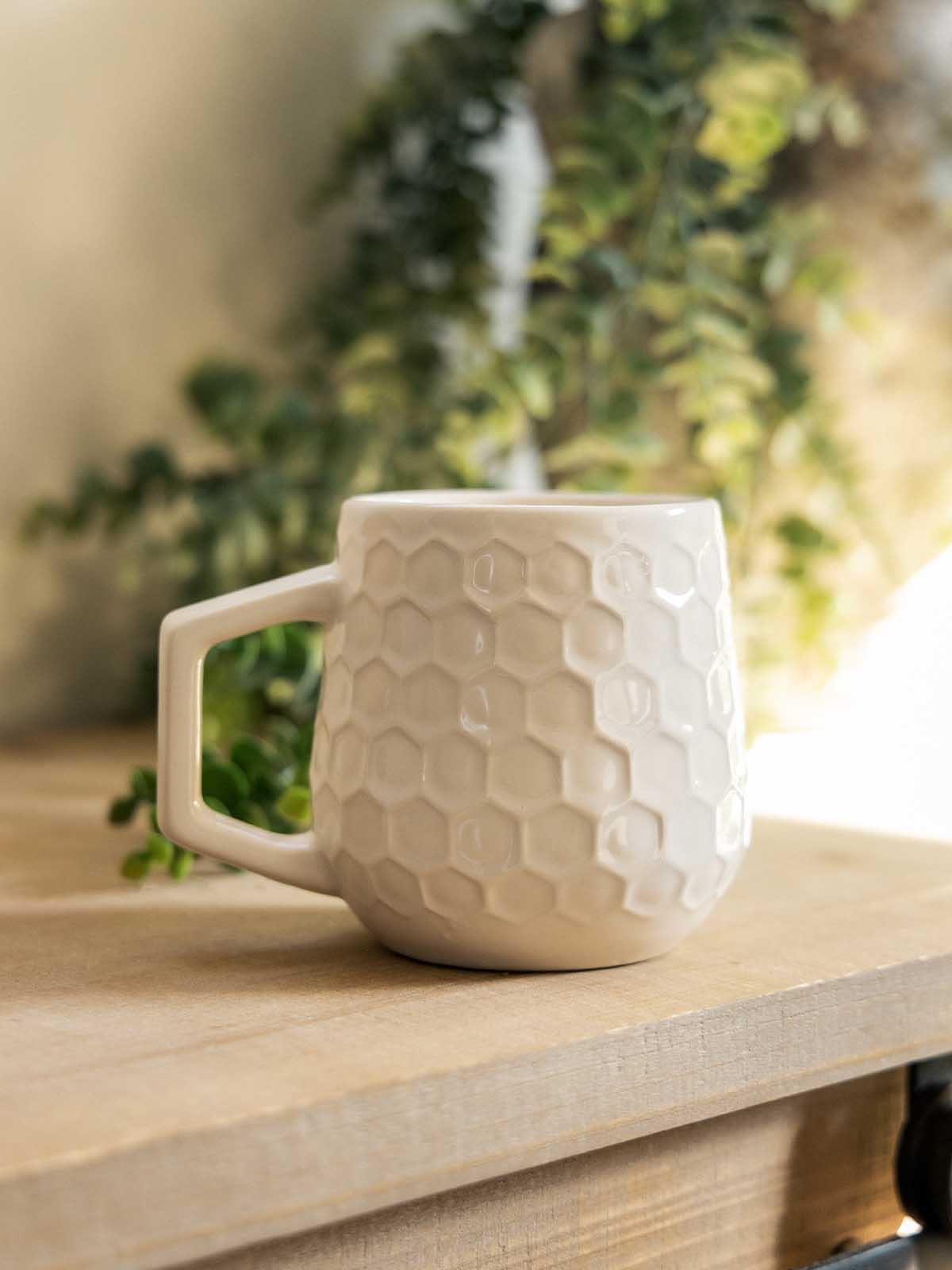 Sip in style with the Honeycomb Mug from Prodigal Pottery. Featuring a beautifully textured honeycomb design in a natural white glaze, this handcrafted stoneware mug is perfect for coffee, tea, or even a cozy cup of soup. With a comfortable 12 oz capacity and dishwasher-safe cleanup, it’s as practical as it is minimal and beautiful.